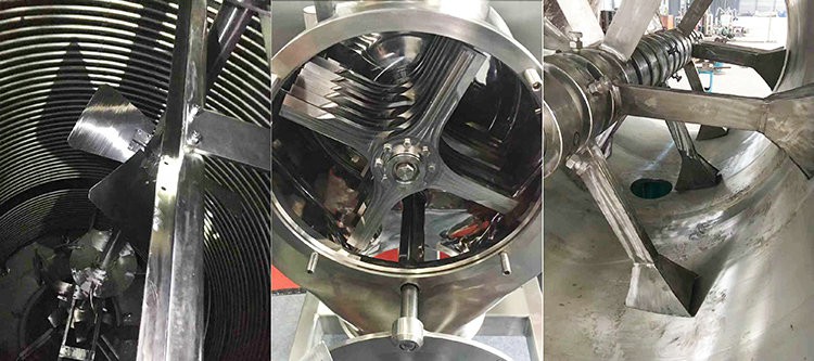 現狀:利用我公司臥式反應釜整體內車加工,設計犁刀式攪拌器與釜體間隙小,混合均勻,達到快速生產目的