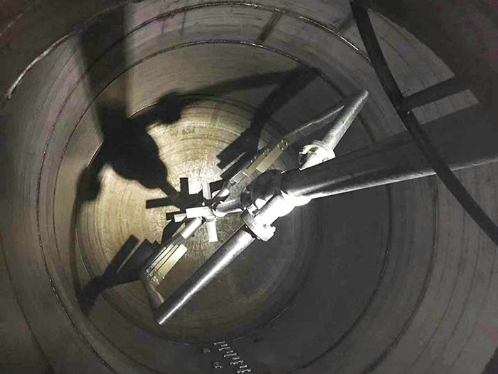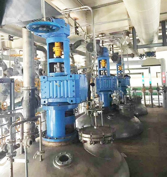 現在:采用共軸攪拌,在反應初期粘度大,可開啟小槳式攪拌,功率低耗能低,帶物料緩動時,再開啟大攪拌使物料完全溶解,